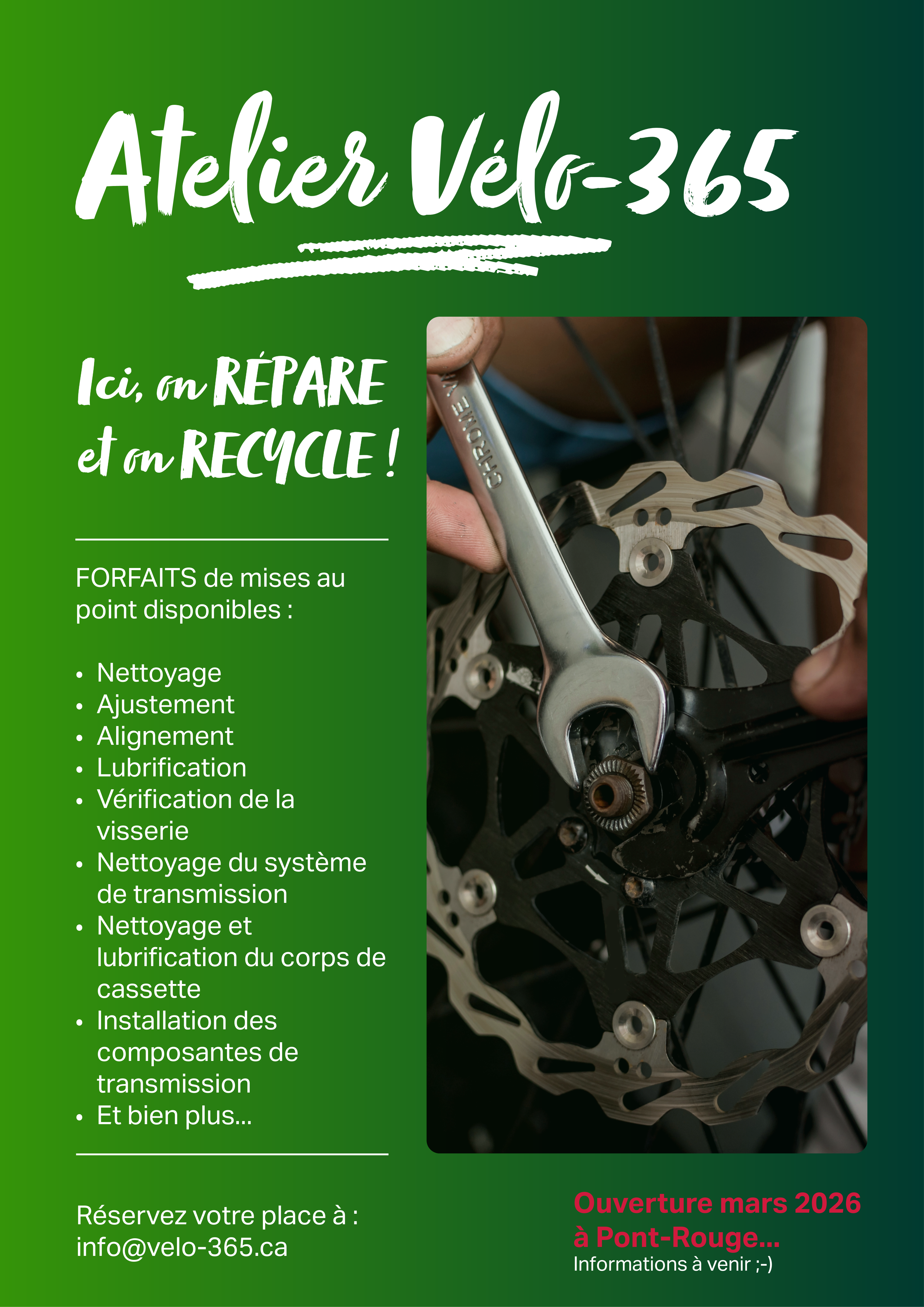 Vous avez le droit d'accéder aux informations personnelles que nous détenons à votre sujet, de les corriger ou de les supprimer, dans la mesure permise par la loi. Vous pouvez également retirer votre consentement à tout moment en nous contactant à l'adresse suivante : info@velo-365.ca